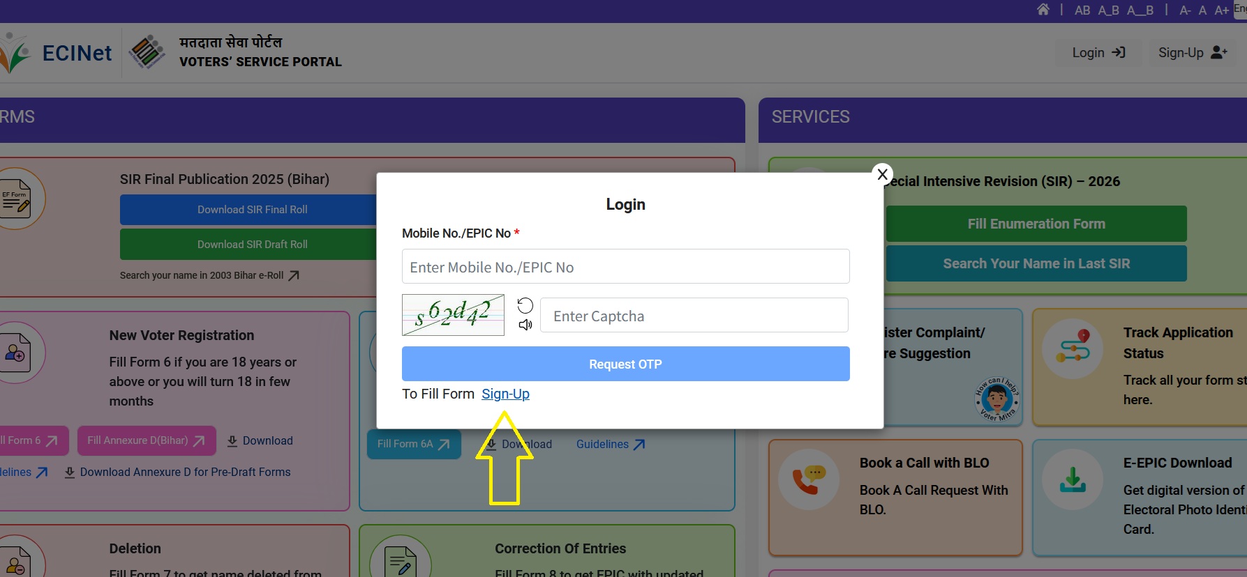 Step-3 : To Fill Form, Click on “Sign-Up” link
