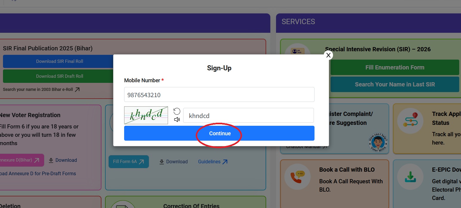 Step-5 : Click on “Continue” button and follow the instructions to fill SIR 2026 form online.
