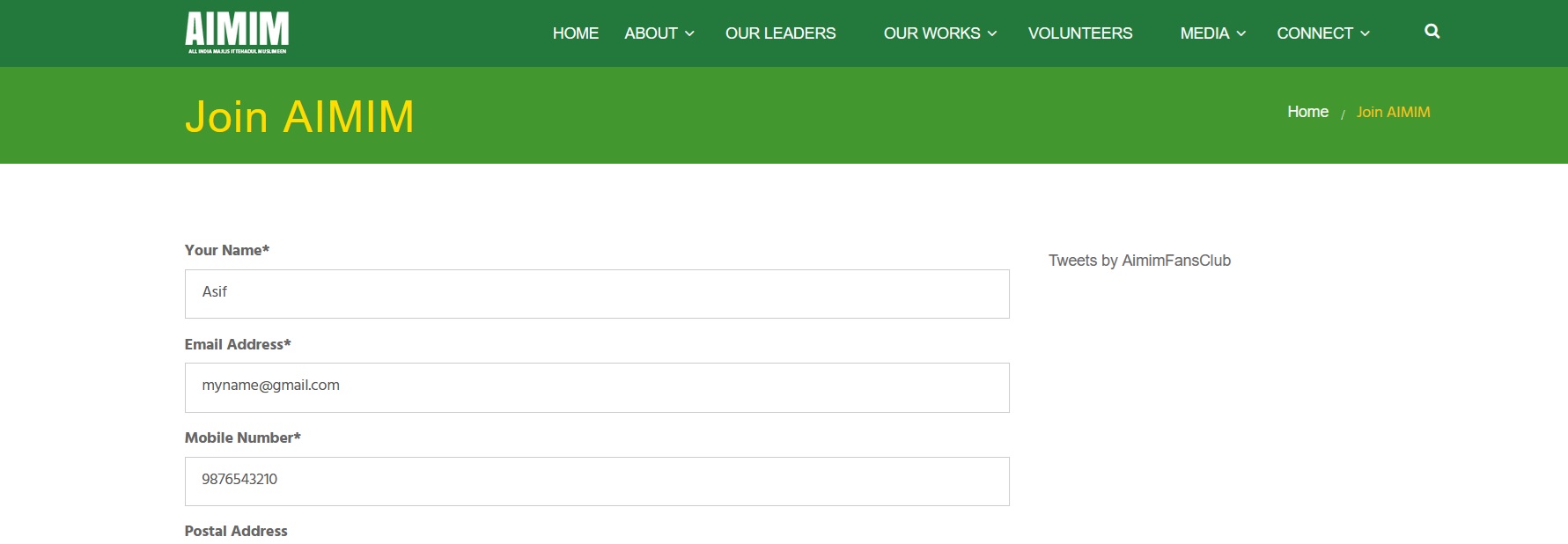 All India Majlis-e-Ittehadul Muslimeen (AIMIM) Membership